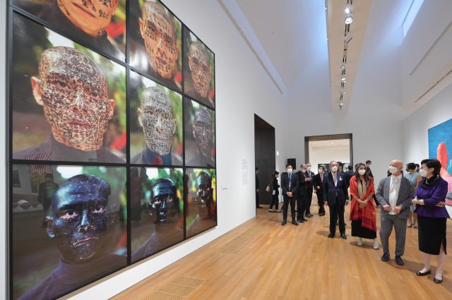 今日是M+开幕后的首个周末,入场人流持续。位于西九的M+博物馆昨日正式开幕,今日(13日)继续有大批市民入场参观。由于参观人数众多,M+今明两日(13至14日)不接受未有预约的到访。 今日是M+开幕后的首个周末,开馆前半小时已有近百人在门外等候入场,入场人流持续,不少已预约的市民,提早到场外排队等入场。期间有入场人士不适,救护员到场协助。 有市民指,无论是哪一天入场,都是第一次来看,感觉新鲜。