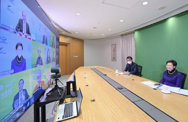 行政长官林郑月娥昨日(11日)晚上透过视像形式,出席亚太经合组织商贸咨询理事会成员对话。 林郑月娥表示,香港是全世界抗疫成效最高的地方之一,将继续推广疫苗接种,致力重启与内地及世界其他地方的免检疫跨境人员往来。 林郑月娥说,香港会透过一系列减碳措施,争取在2050年前达致碳中和。香港作为国际金融中心,将会大力发展绿色金融。现正构建「商业数据通」,预计明年投入运作,应对中小企长期面对的融资问题,为中小企提供统一平台,让它们善用自身的数据获得更便利的融资服务。有关措施能以企业的意愿为本,提供平台促进数据安全共享,令香港银行体系可更有效为实体经济服务。 林郑月娥重申,香港支持自由贸易及区域经济合作,希望香港能尽快加入《区域全面经济伙伴关系协定》。 此外,林郑月娥将于今晚出席以视像形式举行的亚太经合组织领导人非正式会议。
