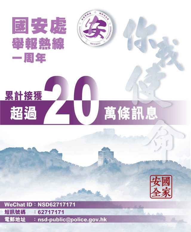 国安处举报热线一年接逾廿万条讯息警方感谢市民为国安作贡献