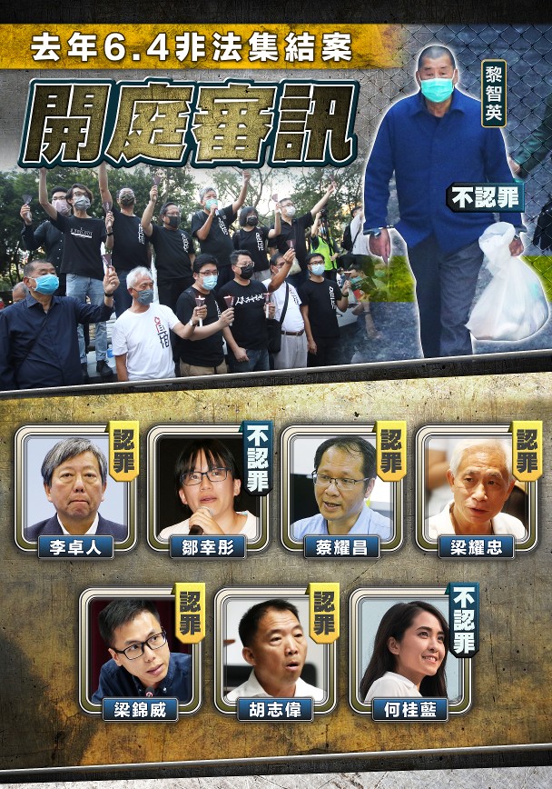 去年6.4非法集结案 黎智英等8名被告 其中5人今改认罪