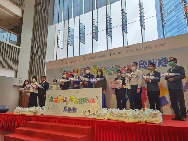 全港社区抗疫连线今日(3日)中午于观塘裕民坊商场举行「接种有福」长者健康计划启动礼,公务员事务局局长聂德权、经民联主席卢伟国、全港社区抗疫连线总召集人陈振彬、陈勇、苏长荣等多人出席活动。 总召集人陈振彬表示,为响应特区政府推动长者接种新冠疫苗,抗疫连线10月将在全港18区举行多场长者健康讲座,并邀请未有接种疫苗的长者参与,透过专业的医护人员讲解,让长者获得正确的接种疫苗资讯,释除疑虑,期望通过活动提高本港疫苗接种率。 陈振彬表示,虽然直至9月本港仍未能达成七成接种率阶段性目标,但其实香港距离目标非常近,期望在连线参与和动员下,鼓励更多市民尽快接种疫苗,让社会各界尽快放下口罩,香港亦能早日恢复与内地通关。 活动期间,有接受疫苗注射两针的长者到台上分享感受,二人表示对疫苗有信心,并呼吁对疫苗有疑虑的朋友不用担心,及早接种疫苗。