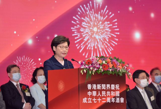 香港新闻界庆祝中华人民共和国成立72周年酒会今日(29日)在港隆重举行。香港特区行政长官林郑月娥,香港中联办副主任卢新宁,驻港国安公署副署长李江舟,外交部驻港公署副特派员潘云东,香港特区政府政务司司长李家超,财政司司长陈茂波,紫荆文化集团有限公司董事长毛超峰,全国政协委员、香港大公文汇传媒集团董事长姜在忠等担任主礼嘉宾。 香港特区行政长官林郑月娥在国庆酒会上致辞。她首先表示,回顾新中国成立的七十多年,纵然面对许多困难挑战,但在人民团结一致,多代人不懈努力之下,国家克服了一个又一个难关,如今,国家已成为全球第二大经济体,成为世界经济增长的主要动力来源,全国人民的生活都获得大大改善,今年,国家更在载人航天探月工程、脱贫攻坚、体育运动、疫情防控等领域取得世界瞩目的成就,我们作为中国人,目睹国家由贫弱走向富强感到非常高兴和自豪,在国家高速发展的过程中,香港既是贡献者也是受惠者,随着香港发展踏入新台阶,香港只要积极融入国家发展大局,就可以享有无限机遇。 林郑称,过去两年,香港面对前所未有的严峻挑战,经历了艰难黑暗的日子,在座众多传媒朋友必定记忆犹新。2019年下半年,黑暴「港独」分子在外部势力的推波助澜下,肆无忌惮破坏社会安宁,更有小部分反中乱港分子,假借新闻传媒的名义,参与渲染违法暴力的行为,扭曲抹黑政府的信息,发放偏颇的报道,甚至捏造假新闻。这些乱象已经达到严重危害国家安全的程度,让绝大部分爱国爱港的市民感到痛心和忧虑。 有幸,中央坚持「一国两制」,按照宪法和基本法进行了两项重大举措,即《香港国安法》的制定和实施,以及完善香港特区选举制度,让发展重回正轨。《香港国安法》针对的只是极少数危害国家安全的违法分子的行为,大多数市民的人权和自由绝不受影响。新闻自由得到《基本法》和其他本地法律的充分保障,目前登记在政府新闻发布系统的本地、海外以及网上媒体,都比去年有增无减,传媒以及市民每天都在行使监督的权利和批评特区政府施政的自由。另外,2021年香港选举委员会界别分组一般选举已经成功举行,象征特区政府落实爱国者治港原则的政治体系踏入迈过重大的里程碑,确保特区政权的治理掌握在爱国爱港人士手中,从而推动香港实现良政善治。 她最后强调,在中华人民共和国72载历史中,虽然香港回归的历史只占了其中的三分之一,但是香港的经济发展和国家发展密不可分,两地人民血浓于水,密不可分。坚信在「一国两制」的前提下,香港未来可以继续发挥优势,用好中央政府的支持,把握粤港澳大湾区的重要发展策略所带来的机遇。在此过程中,她希望新闻界的朋友可以继续发挥专业精神,透过中立客观的报道和评论,让香港市民更好了解国家的发展和当中的机遇,也让内地和海外同胞掌握香港已经由乱及治,马上要由治及兴的情况,欢迎新闻界的朋友,继续监督特区政府,建言献策。