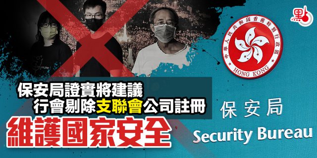 保安局证实将建议行会剔除支联会公司注册维护国家安全