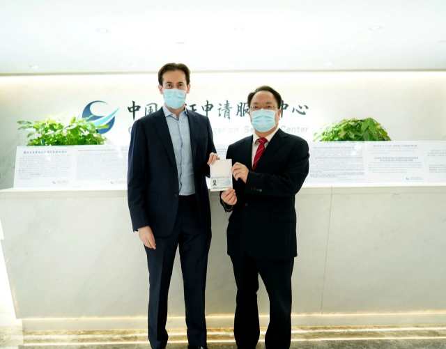 外交部驻港公署早前宣布,根据中国有关法律法规并参考国际通行做法,自2021年9月1日起全面实施生物识别签证。外交部驻港公署副特派员潘云东今日(1日)在香港中国签证申请服务中心向紧急赴中国内地复工复产的签证申请人颁发公署首张生物识别签证。 潘云东表示,申请人获得公署颁发的首张生物识别签证很有意义,希望该申请人继续为促进两国经贸合作交流作出积极贡献,提醒其做好防疫措施、遵守有关防疫规定,并祝愿其赴中国内地工作、旅行顺利。公署和签证申请服务中心将继续为签证申请人提供签证便利和周到服务。 该申请人表示,非常荣幸获得外交部驻港公署首张生物识别签证,他在港生活多年,热爱中国,正在努力学习中文,今后将继续为促进本国与中国尤其是香港特区的交流合作而不懈努力。