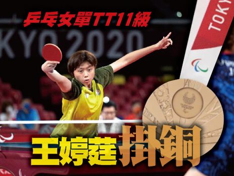港队在本届东京残奥会夺得首面奖牌,17岁的乒乓球女将王婷莛今早(28日)在于女单TT11级赛事夺得铜牌,特首林郑月娥、一众行政会议成员及民政事务局局长徐英伟等发稿祝贺。林郑月娥说:「王婷莛首次登上残奥会舞台就一鸣惊人,表现不比经验丰富的强手逊色,为香港在本届赛事赢得首面奖牌,令人欣喜及振奋,凭着她的坚定意志和出众潜能,我深信她将继续在体坛发光发亮。」 林郑月娥又称,除了王婷莛外,其他香港运动员在残奥会过去几天的赛事中亦是全力以赴,值得鼓励,她和市民会继续透过观看电视转播支持香港运动员。 徐英伟则说:「王婷莛保持超卓水准,以熟练的技术取得佳绩,我们为她感到骄傲。我感谢教练、工作人员及运动员家人对运动员的支持。」 行会非官守议员召集人陈智思表示:「王婷莛凭借运动天赋,加上刻苦训练,首度出战残奥会便发挥超卓表现,为中国香港代表团夺得今届残奥会第一面奖牌,成绩令人振奋。」行会非官守成员就祝愿港队在其他项目继续尽展潜能,再创佳绩,又说支持政府继续透过不同政策措施,推动展能运动,让残疾人士透过体育运动发挥所长。 立法会主席梁君彦议员代表全体立法会议员致函祝贺王婷莛,并向她的训练团队致谢。梁君彦议员表示:「王婷莛首战残奥会展现非凡实力,在小组赛击败上届残奥会金牌得主。她冷静应战,表现出色,打出一场精彩绝伦的比赛,令人留下深刻印象。」 梁君彦也向其他香港残奥运动员送上祝福和鼓励:「不论成绩如何,运动员坚毅不屈的精神值得我们学习。希望各位在全力争胜的同时,亦好好享受与世界各地选手较量的每场比赛。」