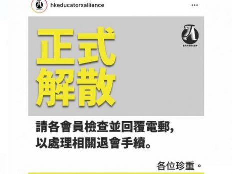 香港教育同行阵线解散曾摆街站反对《港区国安法》