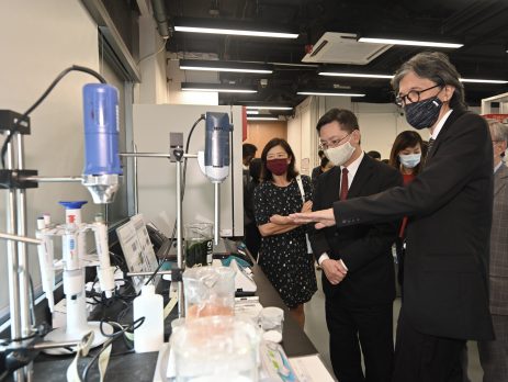 创新及科技局局长薛永恒昨日(13日)参观香港纺织及成衣研发中心,并与研发中心主席杨敏贤及管理团队会面,加深了解研发中心的最新工作进展及发展方向。研发中心行政总裁葛仪文向薛永恒介绍中心多个推动纺织业创新及可持续发展的纺织物循环再造和高性能纺织技术。 薛永恒表示,香港纺织及成衣业是全球市场的重要持份者,喜见研发中心在产业链不同环节以科研提升竞争力,为业界开发崭新物料和先进生产技术,透过研发及技术转移,使纺织及成衣业迈向高增值生产及服务。薛永恒鼓励研发中心继续与业界同行共创,促进研发成果商品化,令业界可以应用更多新技术并开拓新的发展空间,带动香港纺织业的「再工业化」。