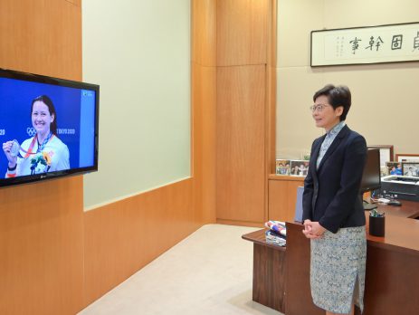 行政长官林郑月娥今日(28日)在社交平台发文,指港队羽毛球奥运组合邓俊文和谢影雪晋身混双四强,明天(29日)将争入决赛,是一个好消息。 林郑月娥祝贺游泳代表何诗蓓在东京奥运为港队再下一城,勇夺银牌。她又赞扬港队奥运乒乓球代表杜凯琹在女单八强的表现,令人击节赞赏,港队每一位运动员都拼尽全力,表现出坚毅的奥运精神,很值得鼓掌。她亦通过社交平台为香港运动员加油。