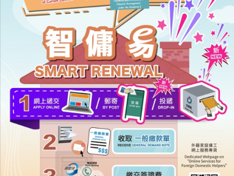入境事务处昨日(15日)公布,下周二(20日)起,扩大「智佣易」服务范围,除经网上递交的续聘外籍家庭佣工签证申请外,亦将适用于透过邮递或投递箱递交的同类申请,进一步方便为外佣办证人士。 「智佣易」服务于今年3月5日推出,初期只适用于经网上递交的续聘外佣签证申请,即与同一雇主续约、完成现有合约的剩余期间,或按疫情的特别安排申请外佣延后返回原居地的申请,办证人士在申请获批后,可选择以不同方式缴付签证费,并以邮递方式领取签证,无须亲身到入境处办事处办理有关手续。 入境处发言人称,「智佣易」自推出至6月底,共有超过21,500宗续聘外佣签证申请透过「智佣易」缴付签证费和领取签证标签。以网上方式申请续聘外佣签证的比例,由服务推出前的约15%,至6月底上升约一倍至近30%,反映公众对新服务反应正面,故决定于7月20日扩大「智佣易」的服务范围,不论是经网上、邮递或投递箱递交申请都可以使用,外佣或雇主均毋须到入境处办事处缴交签证费或领取签证标签。