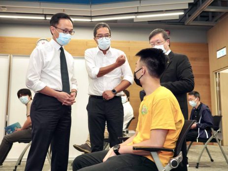 新冠疫苗接种计划展开141日,公务员事务局局长聂德权今日(16日)在社交网站发文表示,根据各政策局和部门对「疫苗假期」申请情况的初步掌握,超过一半公务员已接种第一剂疫苗,呼吁同事们继续积极响应,尽快接种疫苗,让社会早日恢复正常。 聂德权表示,今日疫苗接种外展队到机电工程署总部,为约210名同事及承办商员工接种。他指,机电工程署同事和承办商员工日常需要走访不同政府大楼工作,接触不同人、物,接种疫苗既可以保护自己,亦可以保护同事和家人。 聂德权又即场了解同事接种情况。机电署同事刘先生今日一家四口来打针,他说,「疫苗计划都推行一段时间,要睇定啲都已经睇完,今次可以在公司打,环境舒适,我细仔刚满13岁,所以一家人一齐报名打针,我打完都感觉良好。」 另外,就读科大的机电署实习生曹同学就透露,最初担心疫苗副作用,但与大学教授讨论过,认为机会甚低,因此早已决定接种。「之后复课都需要打针,我本来物色紧疫苗接种中心,但见到公司参加外展接种,觉得非常方便,就即刻报名参与。」