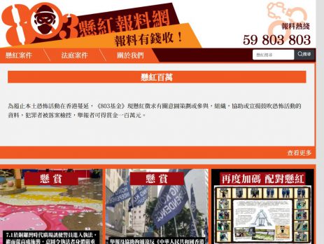 全国政协副主席、前香港特首梁振英今日(6日)在社交平台发文表示,由其创办的「803基金」宣布,为遏止本土恐怖活动在香港蔓延,「803基金」现悬红征求有关意图策划或参与,组织,协助或宣扬鼓吹恐怖活动的资料,犯罪者被落案检控,举报者可得赏金一百万元。 警务处国家安全处高级警司李桂华今日表示,警方昨早在全港执法,瓦解一个「港独」组织「光城者」的恐怖袭击图谋,共拘捕5男4女,包括6名中学生,未知当中有无主脑。警方指,组织有制定行动书籍,列明计划袭击公共设施,包括海底隧道、铁路、法庭,甚至打算在垃圾桶放置土制炸弹,亦有提及「港独」诉求。