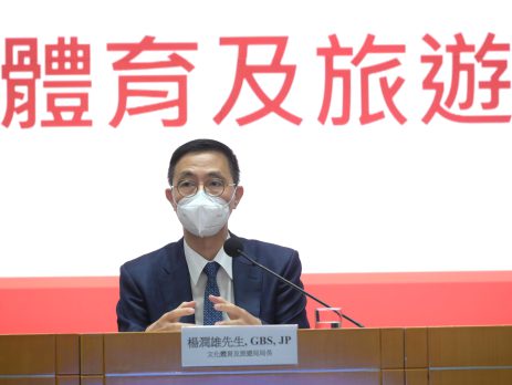本港疫情严峻,文化体育及旅游局局长杨润雄今日(10日)在一个电台节目表示,10月的桌球大师赛及11月的7人榄球赛,暂定会如期举行。由于两项赛事涉及的运动员数目不多,海外运动员抵港后会接受闭环管理,赛事期间会尽量将运动员及观众距离拉远,相信感染风险较低。 杨润雄亦提到过去一星期平均每日有过万宗确诊,科学考量下确实举办大型体育赛事面对困难,若赛事期间有多人同时除口罩,传播风险较高,若赛事只有少量运动员参与,大部分是观众,风险相对较低。