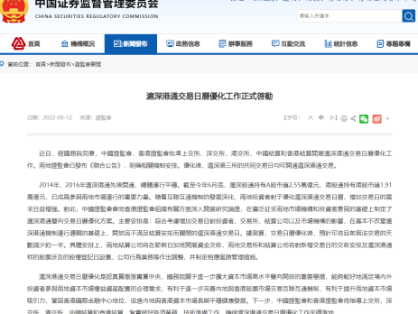 中国证监会及香港证监会8月12日发布联合公告表示,近日,经国务院同意,中国证监会、香港证监会批准,上交所、深交所、港交所、中国结算和香港结算将开展沪深港通交易日历优化工作。优化后,沪深港三所的共同交易日均可开通沪深港通交易。据了解,优化安排需要六个月的准备时间,待取得监管批准、市场准备就绪后实施。实施日期将会适时公布。 由于内地和香港公众假期的差异,以及香港结算周期为T+2、内地结算周期为T+1,投资者现时在某些共同交易日都不能经沪深港通进行交易。交易日历优化后,将令沪深港通交易在香港和内地股票市场均为交易日的日子(即使在相应的结算日为公众假期的情况下)都可以进行。据测算,预计可将目前无法交易的天数减少约一半。 证监会信息显示,本次优化工作综合考虑增加交易日对投资者、交易所、结算公司以及市场机构的影响,在基本不改变沪深港通机制运行逻辑的基础上,开放因不满足结算安排而关闭的沪深港通交易日。 具体安排上看,两地结算公司将在节假日加班开展资金交收,两地交易所和结算公司将对新增交易日的交收安排及沪深港通标的股票涉及的股权登记日设置、公司行为业务等作出调整,并制定相应风险管理措施。 根据中国证监会数据,2014年、2016年沪深港通先后开通至今,总体运行平稳。截至今年6月底,沪深股通持有A股市值2.55万亿元,港股通持有港股市值1.91万元人民币,已成为参与两地市场运行的重要力量。随着互联互通机制的发展深化,两地投资者对于优化沪深港通交易日历、增加交易日的需求日益增强。