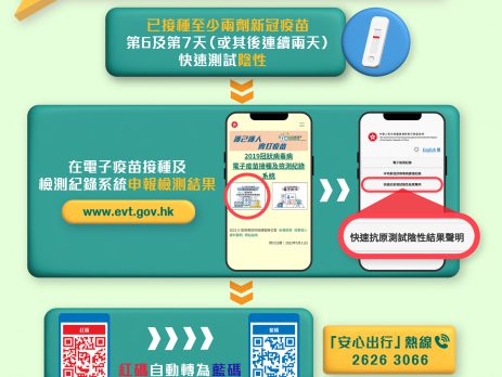 政府调整防疫措施,8月9日起,在「疫苗通行证」加入「红黄码」,确诊人士会获发「红码」,由海外地区或台湾来港人士会获发「黄码」。政府表示,家居或社区隔离设施接受隔离的红码确诊者,如已接种至少2剂新冠疫苗,在第6天及第7天(或其后连续2天)快测获阴性结果,须上网申报,红码才会更新为蓝码。 至于未接种或只接种了1剂新冠疫苗的确诊者,红码会在完成14天隔离期时自动转为蓝码。
