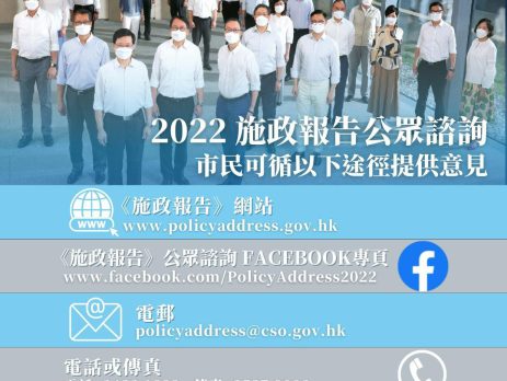 行政长官李家超将于10月19日发表上任后第一份《施政报告》。李家超昨日(25日)晚上在社交媒体上表示,施政要以民为本。每一个利民纾困、有利香港发展的建议,都会珍而重之。 李家超指,距离发表上任后首份《施政报告》还有两个多月。政府将举办约30场咨询会,自己和团队会走进社区探访市民,广泛听取社会各界对《施政报告》的意见和建议。 李家超强调,欢迎市民透过不同渠道表达意见: 《施政报告》网站 《施政报告》公众咨询Facebook专页 电邮([email protected]) 电话(2432 1899)或传真(2537 9083)