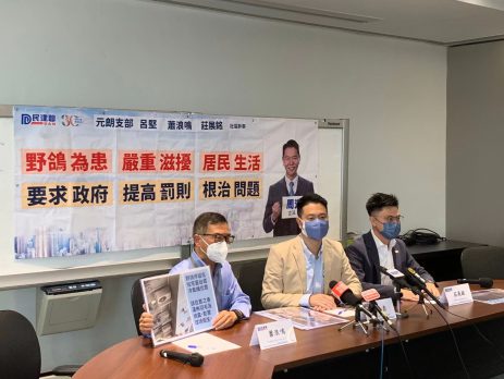 野鸽是市区常见的雀鸟,但由于有人喂饲令大量野鸽聚集,衍生各种社区卫生等问题,对居民更造成严重滋扰。民建联新界西北立法会议员周浩鼎联同民建联元朗支部副主席庄展铭、元朗市分区委员会主席萧浪鸣,今天(22日)举行记者会并提出建议,要求政府采取措施,严肃处理问题。 周浩鼎指出,由于政府正准备修例,把喂饲野猪刑事罚则加重至最高十万元及罚款一年,以增加阻吓性,及把禁止喂饲的区域涵盖至全港每一处地方。周浩鼎指出这次修例正是契机,要求当局把喂饲野鸽一并纳入今次修例安排,从而把罚则同样提升至最高十万元罚款及监禁一年,以增加阻吓性。周浩鼎补充,目前喂饲野鸽的罚款只1000多元,阻吓性明显不足。倘若政府采纳建议,透过今次修例把打击喂饲野鸽一并纳入,可以增加阻吓性,而禁止喂饲地方覆盖至全港,亦有助于当局进行执法,当局亦有必要增加更多人手应对执法。 庄展铭建议,政府增加人手应对喂饲野鸽执法,同时应加强对公众教育说明,喂饲野鸽无论对生态及对社区卫生环境所造成的伤害。萧浪鸣则指出,当局应当在黑点当眼地方,增加清晰标语,对喂饲者可形成一定压力。