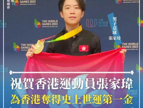 2022年世界运动会于美国伯明翰举行,设有33个项目,香港共有17位运动员参加8个运动项目。行政长官李家超昨日(18日)晚间在社交媒体上表示,今届世界运动会因东京奥运会延期而由去年顺延至今年举行,未免打乱运动员的训练安排。但港队健儿们凭着自强不息的精神,在世运会合共取得1金4铜,创下港队历来最佳成绩。 李家超指,感谢每一位香港运动员的努力,亦特别恭贺张家玮在男子英式桌球个人赛事中,为港队取得世运会历来首面金牌。希望各位青年运动员继续传承这份坚毅不屈的拼搏精神,以实力说话,不断突破自我。
