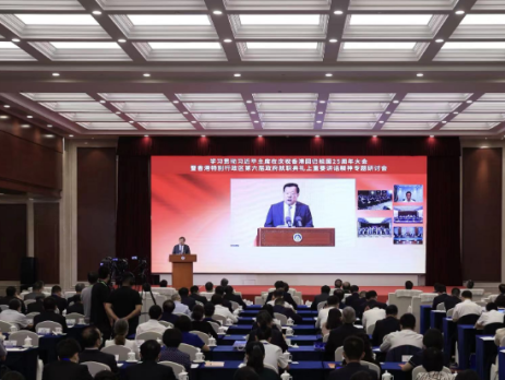 「学习贯彻习近平主席在庆祝香港回归祖国25周年大会暨香港特别行政区第六届政府就职典礼上重要讲话精神」专题研讨会今日(18日)在北京举行。全国政协副主席、国务院港澳事务办公室主任夏宝龙出席研讨会并致辞。 夏宝龙指出,习近平主席重要讲话通篇贯穿着以人民为中心的发展思想,希望新一届特别行政区政府「务实有为、不负人民,把全社会特别是普通市民的期盼作为施政的最大追求」。特别行政区政府要立足当前,谋划长远,一步一个脚印,一件一件干起来,用实实在在的工作成效回应民众期盼,让市民有更多、更直接、更实在的获得感、幸福感、安全感。 夏宝龙表示,习近平主席希望每一位香港居民都成为建设香港的积极力量,共同把香港这个家园建设好、守护好。「家和万事兴」。建设美好家园,是港澳全社会的共同责任,需要人人参与。要团结一切可以团结的力量,调动一切可以调动的积极因素,构建最广泛的「一国两制」统一战线,在爱国爱港、爱国爱澳旗帜下努力画出最大同心圆,汇聚起「一国两制」实践行稳致远的磅礴力量。 夏宝龙最后表示,25周年是一个里程碑,更是一个新起点。我们坚信,在习近平主席重要讲话精神的科学指引下,有伟大祖国的坚定支持,有广大爱国爱港、爱国爱澳同胞的共同奋斗,香港、澳门在中华民族伟大复兴历史进程中必将大有可为、大有作为,「一国两制」实践必将创造新的更大辉煌!