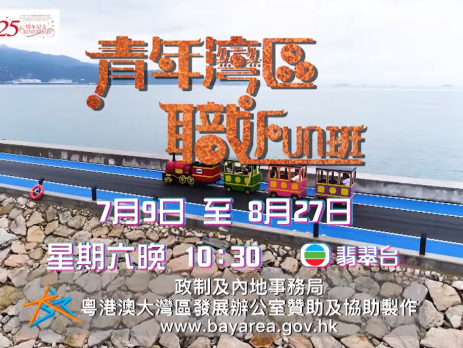 政制及内地事务局粤港澳大湾区发展办公室推出全新的电视节目《青年湾区职Fun班》,将于本周六(9日)首播。节目透过介绍十多位参与“大湾区青年就业计划”(“就业计划”)的香港青年在大湾区内地城市的工作和生活,让公众从多角度了解国家和大湾区内地城市的最新发展和面貌。 《青年湾区职Fun班》电视节目共有八集,以写实形式,走访参与「就业计划」的香港青年,了解他们如何把握大湾区建设带来的事业发展机遇。他们亦会分享初入内地职场遇上的新机会和新挑战,以及在大湾区内地城市生活期间的不同体验,包括当地的生活面貌和民风人情,同时发掘不同城市中有趣和具吸引力的事物。 特区政府在2021年1月推出“就业计划”,鼓励在香港及大湾区内地城市均有业务的企业,聘请香港的大学毕业生,派驻他们到大湾区内地城市工作,现时已有接近1100名毕业生通过“就业计划”到大湾区不同内地城市和企业工作。 由粤港澳大湾区发展办公室赞助、电视广播有限公司制作的《青年湾区职Fun班》共有八集,每集半小时。7月9日起逢星期六晚上10时30分在无线电视81台播出,并将于7月16日起逢星期六晚上7时在无线电视82台及9月18日起逢星期日晚上10时在无线电视85台重播。