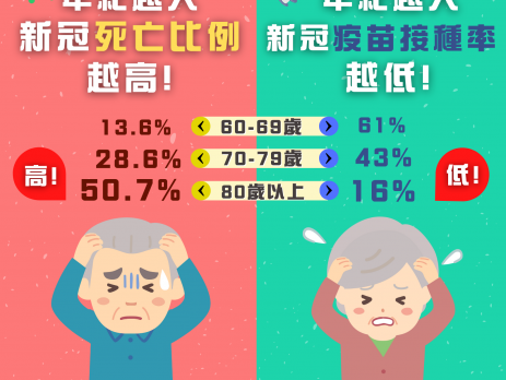 本港新冠疫苗接种计划正进行得如火如荼,政府今日(30日)在社交平台发文,指出香港213宗新冠死亡个案中,60岁或以上人士占绝大多数,有93%,呼吁「老友记」快打疫苗。 政府指出,现时60-69岁分组疫苗接种率为61%,死亡比例为13.6%,70-79岁分组疫苗接种率为28.6%,死亡比例为43%,至于80岁以上人士,疫苗接种率仅有16%,死亡比例达50.7%。政府指,数据显示,死亡比例随年龄增长,但令人担心的是,年纪越大,疫苗接种率却越低。 政府指,两款在香港可接种的疫苗(即科兴和复必泰) 均能有效降低患者的死亡风险,并减少他们住院和患上重症的机会。年纪越大,尤其是有长期病患、免疫力较弱的人士,更需要接种疫苗作保护,呼吁「老友记」快打疫苗。