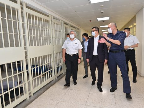 保安局局长邓炳强昨日(28日)视察青山湾入境事务中心和入境事务学院,了解其设施和运作。 邓炳强在入境处处长区嘉宏陪同下,听取人员简介入境事务中心的运作和管理,其后视察中心的各种设施,包括日间活动室、寝室、特别羁留室、运动场和医疗室等。邓炳强并与中心人员会谈交流,了解他们的工作情况及在繁重工作下面对的困难和挑战。 青山湾入境事务中心是入境处羁留设施之一,可容纳最多500人。中心内被羁留人士为非法入境者、逾期逗留人士或抵港时遭入境处拒绝入境人士,正等候遣送离港,当中部分为免遣返声请人。根据法例及现行羁留政策,入境处会就个案的所有事实和情况作出考虑,包括有关人士是否曾干犯严重罪行、是否有机会潜逃或再次干犯罪行等,并会作定期及适时的覆检,以决定是否继续羁留有关人士。 邓炳强随后参观入境事务学院,了解学院的架构、训练课程及设施。他又视察“国情教育”和“出入境管制及旅客出入境检查”课堂,加深认识入境处的培训工作。邓炳强指国情教育有助学员了解国家的发展和建立国民身份认同,培养他们成为具国家观念、香港情怀和国际视野的执法人员。 邓炳强感谢入境处人员一直秉持“正直诚信、公正无私”的信念,不偏不倚地执行各项工作,以精益求精的专业精神服务市民。