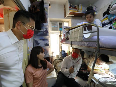 民政事务局今天(1日)在社交网站发文表示,局长徐英伟趁国庆,在民建联立法会议员陈恒镔陪同下,探访荃湾多个劏房户。贴文指,徐英伟与陈恒镔趁此机会,了解住户生活上的需要以及疫情所造成的影响,并向他们介绍政府相关福利计划,还送赠福袋,送上关怀与温暖。 另外,徐英伟亦出席荃湾各界庆祝国庆升旗礼并担任主礼嘉宾,喜见全港各区都有各式各样的庆祝活动,国旗飘扬,市民开心欢度国庆。