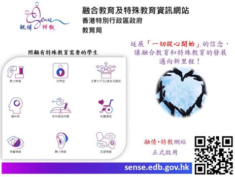 教育局今日(30日)推出“融情‧特教”(SENSE)一站式资讯网站,方便学校、家长及公众获取有关融合教育及特殊教育的最新资讯及网上资源,支援有特殊教育需要的学生。 “融情‧特教”网站设五大分页,包括“融合教育”、“特殊教育”、“专业支援”、“教师专业发展”及“特殊教育需要类别”。“融合教育”分页介绍与普通学校有关的政策、措施及资源;“特殊教育”分页介绍特殊学校的类别、课程及资源;“专业支援”分页介绍教育局的各项支援措施;“教师专业发展”分页载有与特殊教育相关的教师专业发展资讯;“特殊教育需要类别”分页按特殊教育需要类别(智力障碍、自闭症、注意力不足/过度活跃症、精神病、特殊学习困难、肢体伤残、视觉障碍、听力障碍及言语障碍)分别列载了相关的资源及支援措施。 教育局发言人表示,冀公众积极利用“融情‧特教”网站,助有特殊教育需要的学生提升学习水平,促进他们成为独立、有适应能力和自学能力的人,迎接人生挑战。