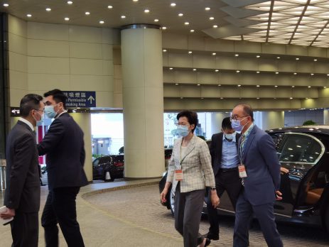 选举委员会界别分组选举今日(19日)举行,是完善选举制度后的首场选举。412名候选人将竞逐13个界别分组共364个席位,投票人或获授权代表可于上午9时至晚上6时期间前往票站投票。上午8时半左右,行政长官林郑月娥到达湾仔会展中心投票站,政制及内地事务局局长曾国卫亦到场视察票站准备情况。