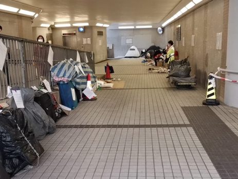 尖沙咀梳士巴利道近香港文化中心的行人隧道内,有大批杂物阻碍行人通过,并发出异味,影响公众卫生。油尖旺地区管理委员会于本月2日该行人隧道墙壁张贴移除杂物通告,通知将于通告贴出后两周,即今日(16日)清理隧道内的杂物,相关部门今日在该处清洗隧道墙身及地面。 政府除张贴告示外,亦持续派员进行多次晚间外展探访,提醒在该处露宿的人士政府将进行相关行动,并了解露宿人士的福利需要,以提供适切的支援服务。行动旨在清理杂物,并非针对该处的露宿人士。 政府感谢相关人士积极配合,在行动前移走该处的全部杂物。相关部门今日在该处清洗隧道墙身及地面。