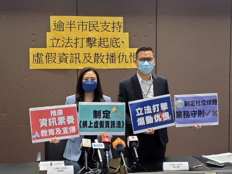 民建联于今年4月、5月及7月委托「香港民意调查中心」进行民调,称逾半受访者支持立法处理「发放假讯息假新闻」及「散播仇恨」。该党立法会议员葛珮帆和陈恒镔今日(9日)召开记者会,呼吁政府制定《网上虚假资讯法》,同时修订《刑事罪行条例》第9条,明确将煽动对公职人员及其家属的憎恨、敌意或藐视等行为,列为违法行为。 葛珮帆强调《网上虚假资讯法》只针对个人和违反国安言论,并非针对新闻媒体,强调相信新闻媒体的专业。陈恒镔被问到专业媒体是否包括《苹果日报》时,称苹果违反《国安法》,指不要将专业媒体同《苹果日报》并论。 民建联建议制定《网上虚假资讯法》,强调法例须符合三大准则,包括符合《香港人权法》及《公民权利和政治权利国际公约》的规定,即法例对权利的限制须基于保障国家安全或公共秩序、公共卫生或风化,同时必须只限于规管影响国安或公共利益的错误事实陈述,并须设立上诉机制,以提供保障。