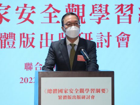 《总体国家安全观学习纲要》繁体版出版研讨会今日(8日)举行。出席今日活动的,包括特区政府律政司司长林定国、中联办副主任尹宗华、中央驻港国安公署副署长李江舟、联合出版集团董事长傅伟中等人。多位专家亦在会上发言。 基本法委员会副主任谭惠珠强调香港国安法具法理依据。她说新时代国家面对的挑战不再限于传统观念的政治安全、国土安全和军事安全,中国的总体国家安全观将国家安全的概念扩阔至其他重点领域,以确保国家安全工作能全方位覆盖不同层面。她更指出国家安全关乎全体人民的福祉,在这个问题上,只有「一国」之责,没有「两制」之别。 基本法委员会原副主任梁爱诗在发言时表示,自己多次以义工身份,面向办学团体、学校教师和社会团体等,宣讲国家安全与香港的关系,认为应从历史解释国家安全的重要性,且必须加强宪法和基本法的教育。她认为国家安全教育是公民教育、国民教育和法治教育,为社会培育好公民,是每个老师的责任。她说国安教育应有清晰的目标、详细的课程内涵和设计,要有维护国家安全的使命感。 香港都会大学荣休校长黄玉山在发言时分享了学习《纲要》的四点体会,包括坚持国家安全是安邦定国的基石、坚持国土安全和政权安全是头等大事、坚持一切以人民安全为宗旨及坚持统筹发展和安全之间的辩证统一。他又呼吁要有坚定的信心、勇敢的斗志和坚强的毅力,要像《纲要》里所说的:「要让发展和安全两个目标有机融合,实现高质量的发展和高水平的良性互动」。 香港新时代发展智库主席屠海鸣表示,香港落实总体国家安全观须把握三个关键问题,一是全面认识总体国家安全观;二是准确把握香港维护国家安全的重点;三是尽快补上维护国家安全的短板。他说,总体国家安全观为「一国两制」的香港实践提供了指引,把握好以上三个关键问题,香港必能进一步筑牢「一国」根基、扩大「两制」空间,推动「一国两制」行稳致远。 香港大学副教授阎小骏表示,香港核心优势在于背靠祖国、联通世界,这保证了香港是中国与外部世界经济贸易交往的枢纽,又是中外沟通交流的战略纽带,始终扮演贯通中西的交流平台这一特殊重要角色。香港要在复杂多变的国际局势中保持持续开放态势,成为中国构建新发展格局可以信赖的平台通道,必须认真维护国家安全,维护和谐的政治环境,才能促进社会安定有序、特区长治久安。