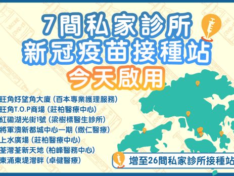 香港再多7个私家诊所疫苗接种点 杨何蓓茵吁入冬前尽早打针