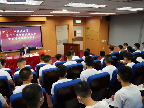 中国共产党第二十次全国代表大会16日在人民大会堂开幕,习近平代表第十九届中央委员会向党的二十大作报告。入境事务处今日(18日)举行中国共产党第二十次全国代表大会重要讲话精神分享会,入境事务处处长区嘉宏勉励所有人员必须真诚拥护「一国两制」,支持全面落实「爱国者治港」,坚决维护国家、特区安全,守好国家的南大门。 二十大报告发布当天,区嘉宏即要求受训学员利用自习时间研读报告,并撰写不多于500字的读后感,让学员深刻了解讲话精神并加强记忆,同时引领部门青年骨干学习认识国家和世界发展大势。今早区嘉宏更亲自前往入境事务学院,与正在受训的约70名学员举行分享会。会上区嘉宏带领学员学习二十大报告,并就报告中与入境处相关的要点作出具体解说,让学员了解报告与部门的密切关联,从而提升学员对国家伟大进程的参与感、使命感。 区嘉宏指出,「青苗他日,可为栋梁」,学员要深刻牢记「青年兴,则香港兴」的道理,学员是维护香港繁荣稳定的中坚分子,支持香港更好融入国家发展大局,实现中华民族伟大复兴的伟大责任正落在他们的肩上。区嘉宏表示,学员是入境处的新力量和未来,希望他们要有担当、有理想,组成一支以爱国爱港为核心、坚定不移全面准确贯彻「一国两制」方针的团队,忠实履行誓言,为国家、为香港的未来奋斗,并紧贴特区政府施政方针,以爱国爱港的心务实建设香港,为香港特区竭诚奉献。