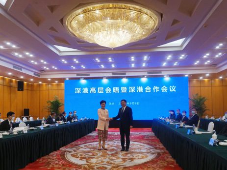 香港特区行政长官林郑月娥今日(6日)率领特区政府代表团往深圳出席深港高层会晤暨2021年深港合作会议。双方就所关心的河套深港科技创新、深港金融互联互通、港大在深办学等各项深港合作议题交换了意见。 会上,深圳市委副书记、市长覃伟中通报近两年深港合作重点工作进展,香港特区政府政务司司长李家超介绍港深合作成果,深圳市副市长郑红波介绍河套深港科技创新合作区深圳园区建设情况,香港特区政府创新及科技局局长薛永恒介绍河套地区创新及科技发展情况,深圳市委常委、副市长艾学峰介绍深港金融论坛和赴港发债工作情况,香港特区政府财经事务及库务局局长许正宇介绍港深金融互联互通情况。 会后,深港双方共同签署了《关于推进河套深港科技创新合作区「一区两园」建设的合作安排》《深圳市人民政府与香港大学关于在深合作办学备忘录》《深圳深港科技创新合作区发展有限公司与香港科技园公司发展「香港科学园深圳分园」框架协议》《深圳国际仲裁院与一邦国际网上仲调中心有限公司合作备忘录》四项重要协议。