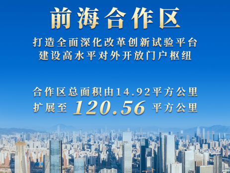 中共中央、国务院印发的《全面深化前海深港现代服务业合作区改革开放方案》今日(6日)发布,前海合作区将打造粤港澳大湾区全面深化改革创新试验平台,建设高水平对外开放门户枢纽。方案明确,进一步扩展前海合作区发展空间,前海合作区总面积由14.92平方公里扩展至120.56平方公里。 方案指出,到2035年,高水平对外开放体制机制更加完善,营商环境达到世界一流水平,建立健全与港澳产业协同联动、市场互联互通、创新驱动支撑的发展模式,建成全球资源配置能力强、创新策源能力强、协同发展带动能力强的高质量发展引擎,改革创新经验得到广泛推广。 根据方案,在打造全面深化改革创新试验平台方面,前海合作区将推进现代服务业创新发展,加快科技发展体制机制改革创新,打造国际一流营商环境,创新合作区治理模式;在建设高水平对外开放门户枢纽方面,前海合作区将深化与港澳服务贸易自由化,扩大金融业对外开放,提升法律事务对外开放水平,高水平参与国际合作。 开发建设前海合作区,是支持香港经济社会发展、提升粤港澳合作水平、构建对外开放新格局的重要举措,对推进粤港澳大湾区建设、支持深圳建设中国特色社会主义先行示范区、增强香港同胞对祖国的向心力具有重要意义。