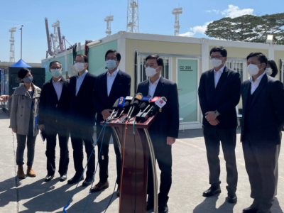 香港疫情失控极为严峻,港府在国家建筑队支援下于多个地方建设社区隔离设施(或称方舱医院),其中在青衣的社区隔离设施,历时一星期已完成建设。今日(3月1日)举行落成仪式,政务司司长李家超、发展局长黄伟纶,以及保安局副局长区志光等官员,今早到青衣社区隔离设施视察。 李家超表示,今早与中联办以及负责建造设施的中国建筑国际集团开会,经商讨后港府将会在下午正式接收设施及启用,开始接收隔离人士。青衣社区隔离设施提供3900个隔离床位,主要用作接收无病征或轻症患者。 李家超在巡视设施后表示,保安局辖下的民安队及纪律部队,将会负责社区隔离设施的日常管理及运作,有信心他们有足够管理经验,会将设施效能及营运水准提升至最高水平,确保入住人士得到适切安排。而首批医护人员,也会抽调有管理隔离设施经验的人,做好预案和应对措施。 李家超又表示,作为首个落成的社区隔离设施,期间只需要7日时间便完工,是上下一心,共同努力的奇迹,他感谢中央全力支持,感谢香港中联办的协调,感谢中国建筑集团2000名工友日以继夜工作。在短时间内完成工程并将设施交给政府运作。 他表示,希望通过一系列措施,能够打赢病毒传播的速度,精准管控,做到下降确诊个案。