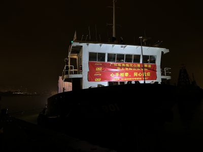 本港第五波疫情大爆发,多名跨境司机染疫,供港的蔬菜鲜活食品受影响。今日(19日)凌晨,由珠江船务货运的驳船负责将多个装有蔬菜及鲜活食品等物品的集装箱,经广州番禺莲花山港运抵油麻地装卸区,集装箱上挂有「心手相牵同心抗疫」标语。 码头卸货区由海事处管理,货物由海关及相关部门现场处理验货后送往长沙湾批发市场。据了解,这是往返粤港两地的首艘物资运输船,原则上一艘船的运力可以满足香港市民一天的蔬菜需求量。 珠江船务董事局主席刘广辉表示,珠江船务作为驻港中资企业,服从香港稳定发展大局、支持防疫抗疫工作,是义不容辞的责任担当。自主经营的20多条粤港航线,今年1月份以来至今共完成170航次运输,供港防疫和民生物资达3.69万吨。