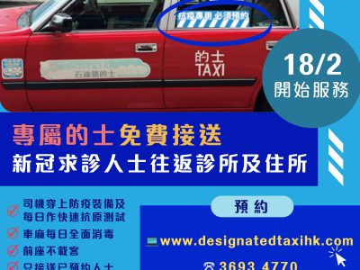 本港第5波新冠疫情严峻,大量初步确诊患者滞留社区,「抗疫的士」今日(18日)起投入服务,免费接送新冠求诊人士返往诊所及住所。 专属车队有约300辆车,司机及车辆均须遵从防疫抗疫指引,的士会在车窗贴上「抗疫专用必须预约」蓝色贴纸以作识别。 已预约指定诊所服务的求诊人士可由今日上午7时起,透过专设的预约平台,或由同日起每日上午8时至晚上10时致电3693 4770预约专属车队服务。