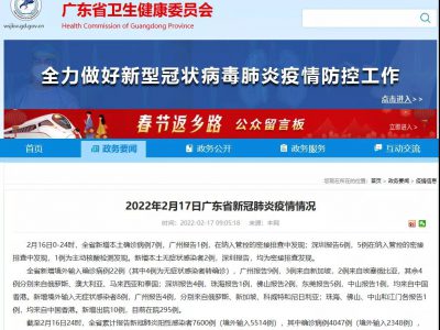 广东省卫健委周四(17日)通报,前一天新增7宗新冠肺炎本土确诊病例、22宗境外输入确诊及8宗无症状感染个案。境外输入确诊有13宗来自香港,分别在入境深圳、珠海、佛山、东莞、中山后确诊,另有4宗由香港输入的无症状感染个案。 2月16日0-24时,全省新增本土确诊病例7例,广州报告1例,在纳入管控的密接排查中发现;深圳报告6例,5例在纳入管控的密接排查中发现,1例为主动核酸检测发现。新增本土无症状感染者2例,深圳报告,均为密接排查发现。 全省新增境外输入确诊病例22例(其中4例为无症状感染者转确诊),广州报告9例,3例来自新加坡,2例来自埃塞俄比亚,其余4例分别来自俄罗斯、澳大利亚、马来西亚和泰国;深圳报告4例,珠海报告1例,佛山报告2例,东莞报告5例,中山报告1例,均来自中国香港。 新增境外输入无症状感染者8例,广州报告4例,分别来自俄罗斯、新加坡、科威特和尼日利亚;珠海、佛山、中山和江门各报告1例,均来自中国香港。新增出院10例,目前在院295例。 截至2月16日24时,全省累计报告新冠肺炎阳性感染者7600例(境外输入5514例),其中确诊病例4047例(境外输入2348例),无症状感染者3553例(境外输入3166例)。 广州市政府新闻办公室周三(16日)举行发布会,提及多间当地企业介绍供港保障情况,其中金域医学已承接香港应急检测任务,累计检测量达150万人份,金域第二实验室近日将在港投产使用,检测产能提升至日均12万人份。粤港澳大湾区“菜篮子”生产基地之一的广州市升永农业公司,现时每日供港蔬菜约40吨。