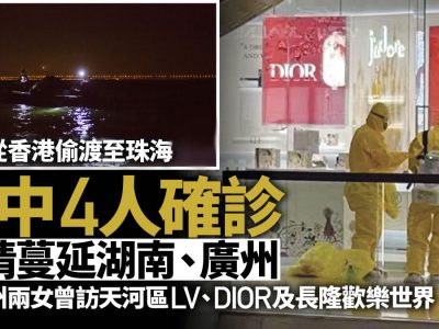 香港疫情严峻,有人从香港偷渡回内地,导致疫情扩散。消息指,15人在情人节(14日)凌晨4点多,由香港东涌码头偷渡至珠海,涉及湖南、福建以及广东多个城市。广东省紧急通知各市要求加强防控措施,并通报有15人从香港经广东省珠海市偷渡入境,现已追踪到12人,涉及广州、深圳、佛山、东莞、惠州,以及省外的湖南、福建。目前,该批偷渡人员中,已有2人在湖南检出阳性、2人在广州检出阳性。 偷渡者踪迹遍布广东、湖南、福建三省 消息指,2月14日凌晨,有15人从香港偷渡至广东省珠海市入境,目前当局已追踪到12人,涉及广东省广州、深圳、佛山、东莞、惠州,以及湖南省、福建省。 目前,该批偷渡人员中,已有2人在湖南验出阳性、2人在广州验出阳性。 二人广州确诊去过名店、长隆 广州卫健委周三(16日)公布,两名分别是21和23岁女子,周一(14日)凌晨从香港入境珠海,随后搭乘网约车达到广州,当晚自行前往医院进行核酸检测,翌日证实确诊。目前,2人已被闭环转运至广州医科大学附属市八医院隔离治疗。 二人曾经到天河区太古汇LV、DIOR等名店,花都区希尔顿酒店,番禺长隆欢乐世界,南沙区的酒店。 周二(15日)长隆欢乐世界紧急关闭消毒。 广州昨夜记者会无透露二人从香港入境 广州市周二晚上8点突然召开疫情记者会,交代上述二人行踪,但只称二人从“外市”入穗,并无透露二人从香港入境,以及偷渡事宜,直至周三早上的新闻公告,才首次公开二人从香港入境。 湖南确诊者偷渡后跨省自驾 另外,据郴州市新冠肺炎疫情防控指挥部通报,2月15日,该市报告2例香港返湘人员新冠肺炎确诊病例,现已闭环转运至定点医院进行隔离治疗。截至2月15日10时,已经排查出密切接触者和重点人群842人,并根据肖某、邓某康的活动轨迹划定重点区域,落实管控措施。 发现疫情后,郴州市迅速行动。郴州市教育局发布通知称,北湖区、苏仙区及市直各学校、幼儿园2022年春季学期延期开学,暂定于2月20日报到,2月21日正式上课。其他县市开学时间由当地教育行政部门商属地疫情防控指挥部,根据疫情防控情况决定是否延期。北湖区新冠肺炎疫情防控指挥部还决定,按照“非必要不举办” 的原则,全区暂停公众聚集性活动。 郴州市公安局今日发布公告,二人涉妨害传染病防治罪等罪名,被公安机关立案侦查。 十万悬赏打击偷渡 组织民兵、渔船堵截 因应有人从香港偷渡回内地确诊,广东省珠海市香洲区等各个区疫情防控指挥部相继发布通告,悬赏征集疫情防控反走私反偷渡线索。 通告提出,举报走私违法犯罪活动被认定违法犯罪的,给予最高5万元奖励。举报运送、组织他人偷越国(边)境犯罪线索的,每查获1艘(辆)偷渡交通工具,奖励10万元;每查获1名组织者(俗称“蛇头”),奖励3万元;每查获1名偷渡者,奖励1万元。相关线索已获得其他部门同类奖励的,不得重复申请以上奖励;对不同人员就同一线索向有关部门进行举报的,按举报时间顺序确定一名奖励人(单位)。 据了解,深圳亦有相关悬红打击偷渡的措施。 有蛇头接应 一人曾在柴湾泉记饮食工作 广东省惠州市博罗县发出公告,称“珠海偷渡事件”的15人中,有2人惠州市博罗县龙溪街道,包括分别为梁某雄(广东省茂名信宜市人)、李某冠(广西自治区崇左市天等县人),李曾在香港柴湾泉记饮食后厨工作,是梁的妹夫。 当局亦发布二人偷渡到细节,指2月14日凌晨3至5点,从东涌码头上船,船上15人“彼此紧靠”;到5点30至40分,在珠海斗门上岸,乘搭蛇头安排的车辆到珠海的巴士站,之后搭车到惠州市博罗县龙溪街道,约在中午12点41分抵达。 目前博罗县龙溪街道五条村需要全员核酸检测 2月16日,惠州市博罗县龙溪街道防控办发布通告称,现因有两名涉疫人员在该街道范围内活动,请小蓬岗村、埔上村、宫庭村、白莲湖村、岐岗村全体人员,按相应要求自觉落实防控措施并到以下核酸点开展核酸检测。期间要戴好口罩,避免乘坐公共交通工具。 为了做好疫情防控工作,请各位市民积极配合,以便做到精准管控,防患于未然。大家无须恐慌,不信谣、不传谣。 另外,根据疫情防控工作需要,自2022年2月16日起,龙溪街道以下区域将划定为疫情封控区、管控区、防范区。 一、如图所示:小蓬岗村陈屋小组的红色范围表示封控区 二、如图所示:小蓬岗村陈屋小组的黄色范围表示管控区 三、防范区:小蓬岗村、埔上村、宫庭村、白莲湖村、岐岗村全村区域。 以上区域管控措施按相关防疫规定执行。相关防疫措施自2月16日01时起执行,后续将根据疫情防控形势变化及时调整。 核酸采集点信息如下: 时间: 2月16日 8:30-20:30 采集对象: 小蓬岗村、埔上村、宫庭村、白莲湖村、岐岗村全体人员 采集点地址: 1. 埔上村委会采样点:埔上村委会 2. 小蓬岗村陈屋村小组采样点:陈屋村文化活动中心 3.宫庭村新时代文明实践站采样点:宫庭党群服务中心(宫庭批发部旁)