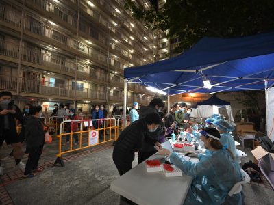 本港疫情持续恶化,确诊数字再刷新纪录。政府自昨晚8时起围封香港仔华富(一)村华裕楼进行强制检测,受检人士须留在其处所并接受强检。政府今日(15日)中午约12时15分完成强制检测行动。政府指,截至今日凌晨零时,约730人接受检测,当中共发现11宗初步阳性检测个案,卫生署卫生防护中心会安排跟进。 自今日中午约12时15分起,华富(一)村华裕楼内已进行检测的人士如能出示阴性检测结果电话短讯以证明接受强制检测,可在向订明人员提供个人资料后,经由指定出口离开「受限区域」。此外,政府亦在「受限区域」内派员到访约240户,当中16户在过程中没人应门,政府会采取措施跟进。 政府昨日亦发出强制检测公告,任何于今年2月1日至14日期间曾身处上述大厦内超过两小时的人士,即使在「相关宣告」开始生效时不在「受限区域」内,亦须在明日或之前接受强制检测。由于涉及变异病毒株,审慎起见,已接种疫苗及近日已进行检测的人士均仍须接受检测。