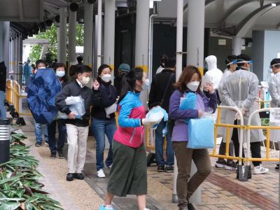葵涌村逸葵楼爆发「超级传播」,大厦接连出现确诊个案,至少20人染疫,全幢约2700名居民昨日起居家隔离,禁足5日强检。今日(22日)早上,逸葵楼有4男2女居民被视为密切接触者,被安排到竹篙湾检疫中心隔离;及后,再有2男1女被安排到指定隔离中心隔离。 邻近逸葵楼的映葵楼亦有1宗阳性及2宗初确,今日4时围封强检,属政府首次在半夜突击封区。强检期间,1名男住客被安排用救护车送院。 有映葵楼居民对半夜封区感突然,指居家隔离是好事,能保障家人和村民;有居民指,本来不担心疫情,但村内2座楼先后有确诊个案,开始感到担心;亦有居民表示,无收到检测通知,看电视新闻才知大厦被围封,批政府应及早通知居民。