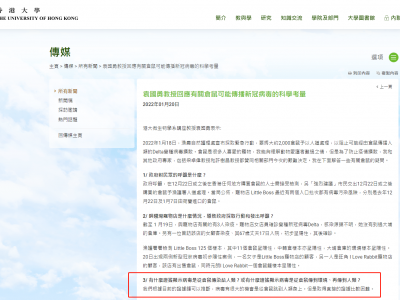 本港第五波疫情严峻,铜锣湾宠物店「Little Boss」的23岁女售货员确诊Delta,且感染源头不明,外界关注是否涉及动物传播。卫生防护中心传染病处主任张竹君昨日(20日)公布,元朗「I Love Rabbit」宠物店有仓鼠笼验出病毒,当局认为疫症经动物传人的机会「可能增加很多」。 香港大学微生物学系讲座教授袁国勇昨日通过港大网页发文,指团队在宠物店分离的病毒多了一个名为「D427G」的特殊突变,而捷克的病毒上面没有检测到这突变,这显示宠物店发现的病毒可能是一个新的突变。虽然目前不能确定这个突变病毒是在仓鼠的体内产生后再传染给人,但若不尽快阻止这种变异病毒在社区传播,它可能会在香港、内地和海外蔓延,导致另一场灾难。 袁国勇指出,他们根据目前的证据链可以推断,病毒有很大的机会是从仓鼠跳到人类身上,但是取得直接的证据比较困难。他解释虽没有直接的证据,但流行病学调查表明,大埔仓库的动物和环境样本呈阳性,宠物店的动物和环境样本特别是仓鼠的样本也呈阳性,所以有理由怀疑有1000多只仓鼠密集在一起的仓库是病毒源,病毒可以通过交叉感染扩大,并传播到宠物店和其他许多零售场所,在各处进一步扩大,并且传染到人类身上。 他提到,现时最少有四大证据证明很有可能由仓鼠携带的病毒传播到人的身上:一是在大埔仓库中检测到一个类似非本地的欧洲Delta变体,是在动物笼子中检测到的病毒,这表明病毒可能是通过仓鼠从荷兰进口,渔护署正在取样作进一步调查;二是铜锣湾宠物店内的环境样本和超过10%的仓鼠都检测到病毒;三是一名Little Boss宠物店的工作人员和一名宠物店的顾客被感染,他们从未去过该仓库;四是本月20日初步确诊的两宗确诊案例,都与仓鼠有关。 最后,袁国勇表示仓鼠也是生命,他完全能够理解市民痛心2000多只小生命的逝世,但他们共同面对的是一个全新的情况,需要谦虚地学习如何应付。他指出,科学和医学不能解决爱心的问题,我们需要其他专业人士的帮助,如心理学家、辅导人员和丧亲辅导专家,帮助公众应对情感危机。他最后说:「科学家对这个刚在香港出现的Delta突变病毒的致病性和传染性一无所知,正加倍努力研究找出答案,我们也需要社会的理解和支持。」 点此查看袁国勇回应有关仓鼠可能传播新冠病毒的科学考量