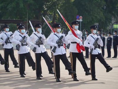 本港各大纪律部队2021年年初逐步引入中式步操,香港警队决定自今年7月1日起,全面转用中式步操。除各典礼仪式及结业会操外,各级人员日常也须遵守敬礼等中式步操礼仪。 香港警察学院于2021年12月30日推出中式步操电子学习课程,向人员简介中式步操的引入及应用、与港式步操的重点区别,以及相关基本知识和技巧。警方表示,课程最后设有小测验,完成测验的人员可获发证书。学院也将于今年第二季度推出中式步操训练日教材,并调派步操教官在各单位的训练日协助前线人员学习中式步操的基本动作及口令,并会按需要为前线单位举办升旗及降旗工作坊。 香港荃湾警区于2021年12月16日在区内小学举办中式升旗导师培训班,邀请了香港警察公共关系科的义工导师向36名来自区内中、小学的校长及老师教授相关技巧。培训班教授了中式步操的基本动作,包括立定、齐步、踏步、敬礼及升旗等,并讲解了中式升旗仪式的流程并作出示范。