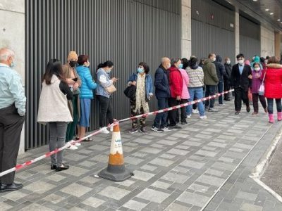 本港新冠肺炎疫情严峻,Omicron杀入社区,政府忧虑屯门存在隐形传播链,吁居民尽快检测,连日来排队等候检测的地点屡现人龙。政府今日(13日)早上9时45分宣布,在屯门区内设置的检测点中,根据目前情况,友爱体育馆、蝴蝶湾社区中心、建生社区会堂及青田游乐场流动采样站的人流较少,市民可尝试前往这些采样站进行检测,轮候时间可能会较短,以上采样站均开放至今晚8时。 当局指出,实际轮候时间或会随情况有所变动,请市民谅解。为减低病毒病传播风险,呼吁所有对身体状况有怀疑的人士,或有感染风险的人士(如曾到访有疫情爆发的地方或曾接触阳性检测个案)尽快进行检测,以有效地及早识别感染者。 今早7时许,友爱体育馆的检测站已大排长龙,有居民早在凌晨5时许已到,表示汲取日前轮候了6小时的经验,所以今早提早来排队,认为应该每个屋村都设立检测站,方便市民;亦有居民指,今日排队人龙比昨日少,认为应该派筹。