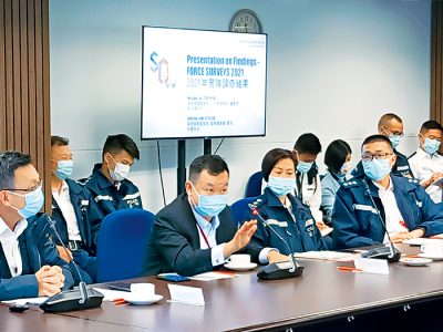 香港警队服务质素监察部昨日(12日)公布新一轮公众及警队员工意见调查。调查显示,有近八成受访者表示对警队充满信心,而员工对警队的投入和满意度在所有范畴的平均分均上升。 警队服务质素监察部于去年6月至7月间以电话访问1001名18岁及以上本地居民。警队整体表现在满分100分中获得平均分71.8分,另外对日间及晚间感到安全的受访者分别有九成及八成。 另外,在访问1022名曾于去年1月至3月期间直接与警方联络的市民时发现,大部分受访者对「使用电子报案中心后收到电话回覆」所提供的服务感到满意(75.0%),其次是「致电999」(73.3%)、「事发现场联络警员」(72.4%)、「到访报案室」(72.3%)等。受访者对「警务人员的态度」大致满意,并在满分5分中给予4.0至4.3分的评分。 此外,服务质素监察部一项量度员工对警队的投入和满意度的网上调查收到4951人回应,指绝大部分受访员工表示认同警队「使香港继续是世界上其中一个最安全及稳定的社会」的抱负(96.8%),并愿意付出额外努力,以帮助警队取得成功(90.8%)。员工亦认同「警队的整体表现良好」(87.2%)及「喜欢在警队工作」(90.6%)。另外,警队整体士气跃进22.5%,内部沟通提升13.4%,员工对警队的领导才能的满意度亦提升11.6%。