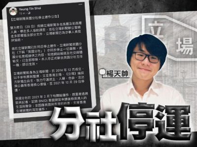 网媒《立场新闻》昨(29日)在警方国家安全处大规模行动后,英国分社主任杨天帅今(30日)于facebook发文,指由于《立场新闻》已停止运作,英国分社亦同步停止一切业务。英国分社曾经提供之内容,包括网站报道及社交媒体帖文,已全部移除。他本人亦正式辞去英国分社主任一职,即日生效。 杨天帅指英国分社于今年年2月下旬开始运作,原意是透过驻英记者,记录英国国民(海外)护照(BNO)签证开放申请后移英港人的生活与声音;并因应英国与香港的时差,支援香港立场新闻的深宵运作。