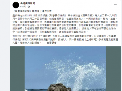 警方国安处拘捕7人,其中6人是网媒《立场新闻》前任及现任高层,涉嫌串谋发布煽动性刊物,警方的执法行动令到反中乱港势力闻风丧胆。《香港独媒新闻》指,因应情况,为免误入法网,将于2022年1月1日零时停止运作专页,并将于日内移除。《香港独媒新闻》所有有关人员同时解散。
