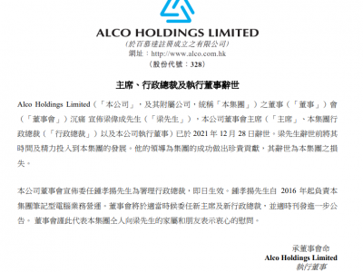 爱高集团证实董事会主席梁伟成辞世 股份今早复牌