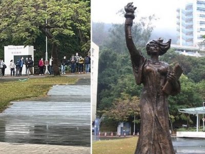 继置于香港大学内的反中之柱昨日被搬离校园后,摆放于香港中文大学内的「女神像」,和香港岭南大学内的反中浮雕今(24日)早亦分别被校方移走和拆除。 在中大,原本摆放「女神像」的位置空空如也,只有工人在场清洁。暂未知「雕像」被移送到那里。 岭南大学学生会编辑委员会今早在fb发文,指清晨约5时,位于梁銶琚楼外空地的「浮雕」被围封,由学校工程部人员拆除后,以胶纸层层包着并准备移走。现场学校保安无回应如何处置该浮雕。